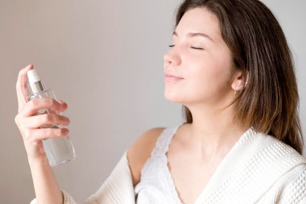 Bước 5: Dùng nước hoa hồng để cân bằng da