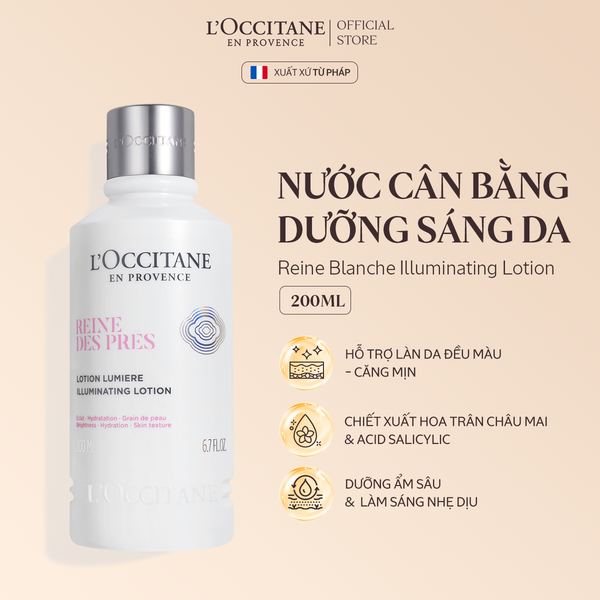 1. Nước Cân Bằng Dưỡng Trắng Sáng Da Trân Châu Mai L'Occitane Reine Blanche Illuminating Lotion